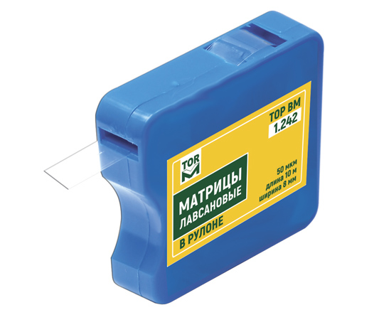 Матрицы лавсановые сепарационные используют с целью исключения заполнения пломбировочным материалом межзубного промежутка и обеспечения правильного формирования контактной точки между зубами.