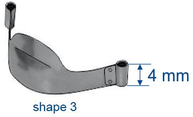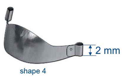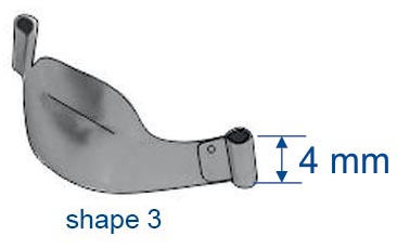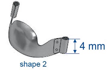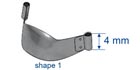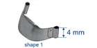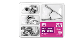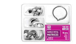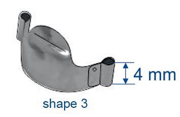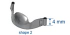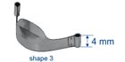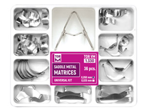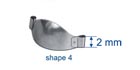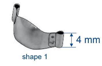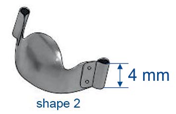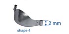 The tubes at the edges of the matrices of shape 4 are 2 mm high, being 2 times lower than that of matrices of shapes 1 - 3. The lower tubes of the shape 4 matrix allow to place matrix on a low crown and move it around the tooth without touching the gum.