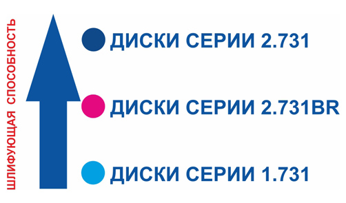 Диски серии 2.731 характеризуются наибольшей шлифующей способностью и износостойкостью среди всех дисков, выпускаемых ООО "ТОР ВМ". Диски серии 2.731BR более тонкие и гибкие по сравнению с дисками серии 2.731. |