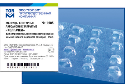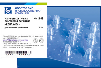 Матрицы контурные лавсановые (матрицы-«колпачки») предназначены для лечения кариеса и проведения эстетической реставрации некрасивых или изменивших цвет зубов (в основном - передних), а также для восстановления врожденных дефектов и дефектов, возникших в результате травм. Идеальное восстановление естественного зубного ряда обеспечивают анатомичность форм и вариации размеров, тонкие интерпроксимальные стенки колпачков, жесткость материала. Колпачки удобны в работе - легко снимаются, обеспечивают плотный контакт и гладкую поверхность реставрации, идеальны для работы с химическими и светоотверждаемыми материалами.