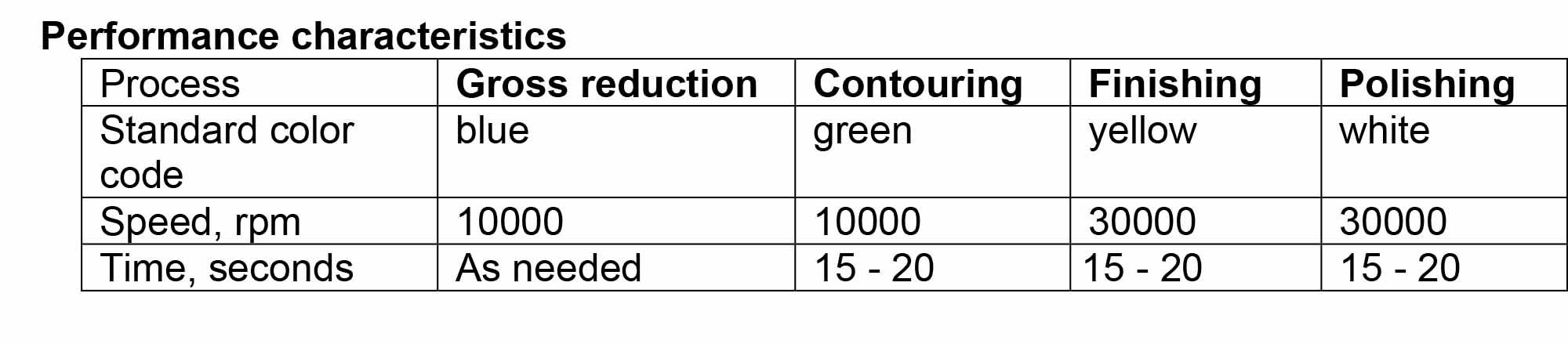 4. Use successively discs of all 4 types - otherwise the quality of restoration polishing may be reduced.