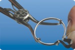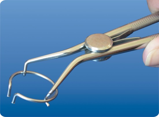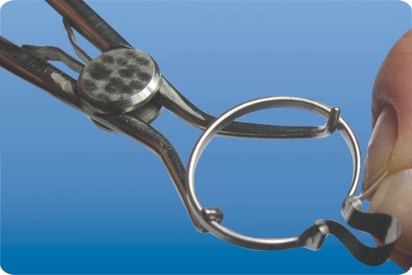 | Using forceps N 1.099-1 (or NN 1.099-2, 1.099-3) force apart the ring N 1.099, avoiding excessive opening of ring tines. | |
