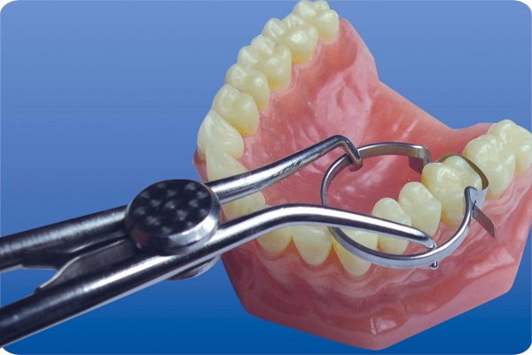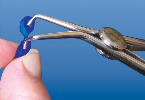 | 2. Open forceps stretching elastic wedge and install it into interdental space. | |