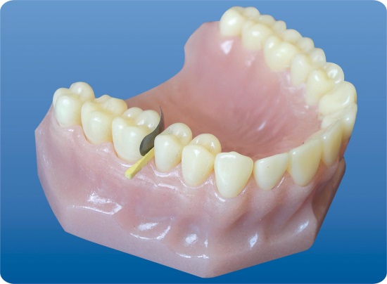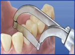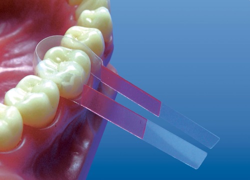 | 2. Press the handhold of the strip forcing its working part to the adjacent tooth. |