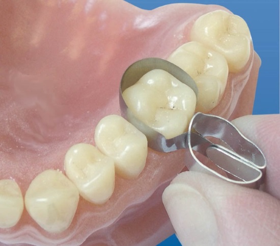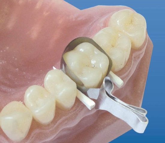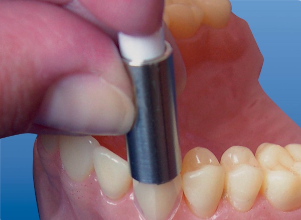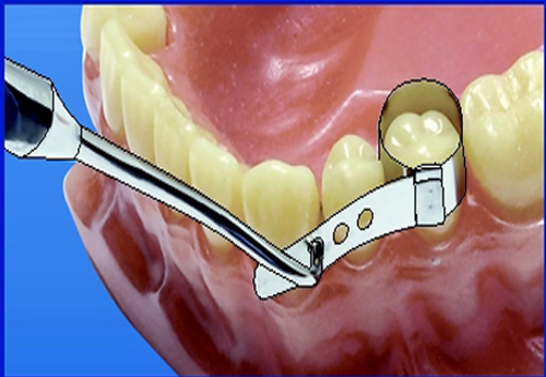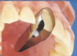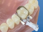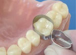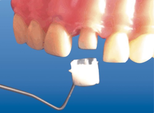 | 3. Put the filled crown on to the tooth under restoration. | |
