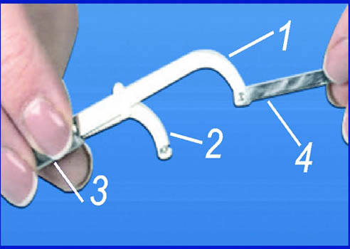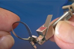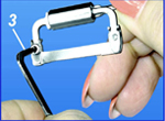 | Bend the blade (strip) 4 around leg 1 of the proxicut holder, insert finger on leg 2 of the proxicut holder in another hole of the the blade (strip) 4. | |