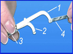 | Insert finger of leg 1 of the proxicut holder into the hole of saw blade (diamond strip) 4 and bend the blade (strip) 4 around leg 1 of the proxicut holder. | |