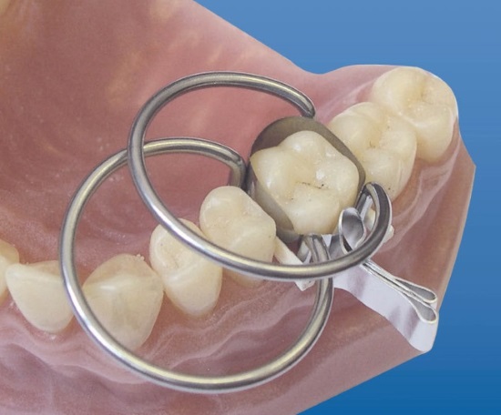 | Restoration of two contacts with matrix combined with clamp, fixing wedges and ring № 1.099. |