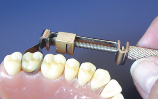 | Regulate the matrix loop length, fix it and install the system onto the tooth. | |