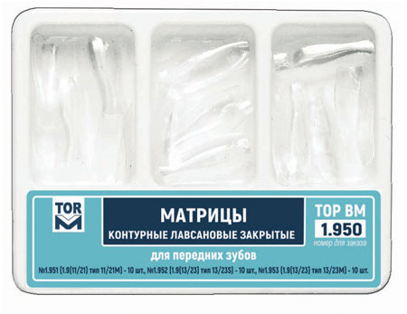 Матрицы контурные лавсановые для передних зубов имеют анатомическую форму, что обеспечивает получение предсказуемой реставрации и идеальное воссоздание профиля реставрируемого зуба.