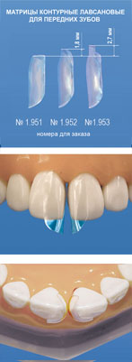 Матрицы могут быть использованы для закрытия диастемы (более 1 мм), восстановления десневого черного треугольника, лечения пришеечного кариеса.