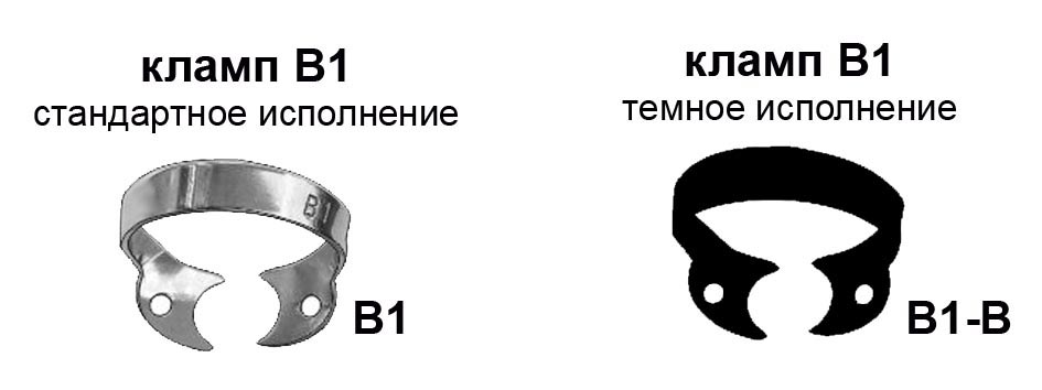 Кламп(для моляров нижней челюсти)1 шт. У клампа B1-M рабочие части тоньше, чем у клампа B1, что обеспечивает больше свободного пространства в придесневой области и позволяет проводить больше манипуляций |