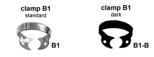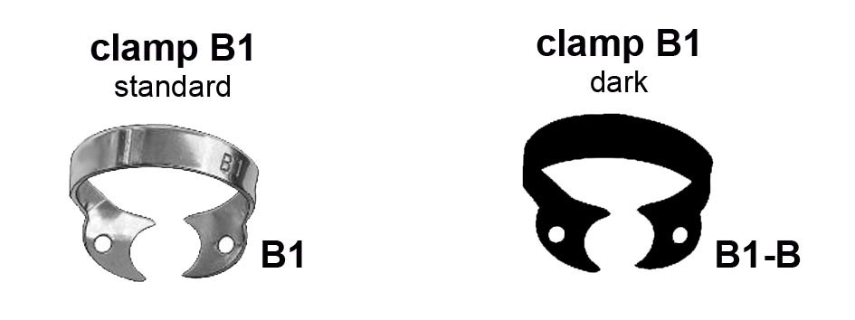 Clamp(for lower molars)1 pc. Clamp B1-M has thinner edges of the working part than clamp B1, that provides more free space in gingival area for performing more various manipulations |