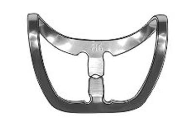 Clamp(Brinker "butterfly" clamp with wide "jaws" (for upper and lower anteriors))1 pc. Clamp B6-M has thinner edges of the working part than clamp B6, that provides more free space in gingival area for performing more various manipulations |