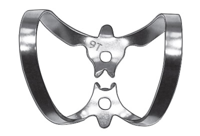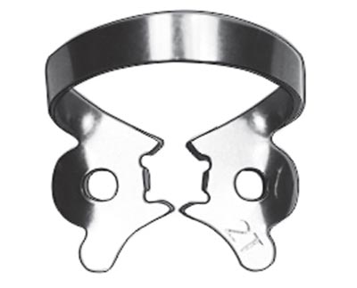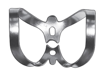 Clamp(when working on mandibular molars provides enough distal retraction in the rubber dam to allow to place a tofflemire or saddle retainer (or similar))1 pc. |