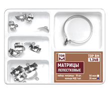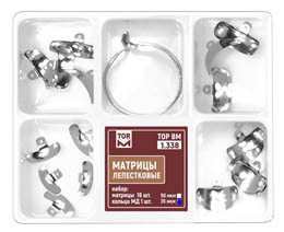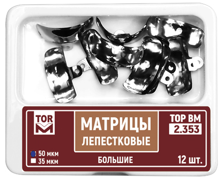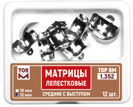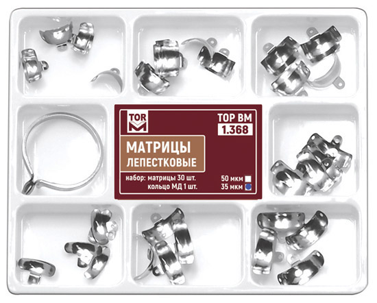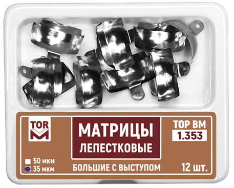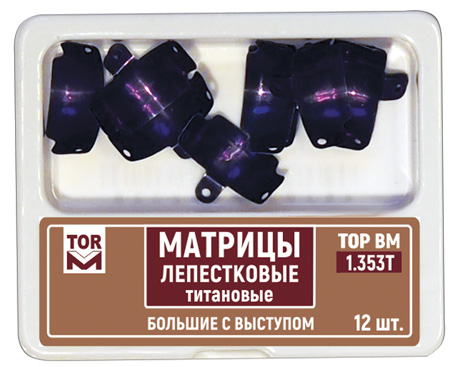 | Матрицы лепестковые предназначены для разделения аппроксимальных поверхностей соседних зубов при реставрации II типа. Лепестковые матрицы обеспечивают более полный охват зуба по сравнению с секционными. Наличие лепестков позволяет притянуть матрицу к соседнему зубу в любом направлении. Отверстия обеспечивают более надежный захват при установке и извленчении матрицы. Матрицы выпускаются в наборах №№ 1.351 - 1.353, 1.353L, 2.351 - 2.353 и №№ 1.338, 1.348, 1.368 . новинкаМатрицы лепестковые титановыеC 2023 года выпускаются матрицы лепестковые титановые №№ 1.351T, 1.352T, 1.353T . Матрицы лепестковые титановые характеризуются большей износоустойчивостью и удобством в работе за счет антибликового эффекта. |