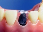 | 3. помещают колпачок на поврежденный зуб. | |
