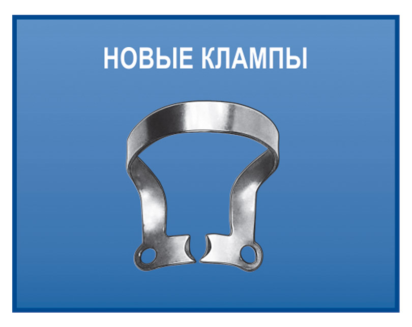 Новые клампы "Тигровые" клампы с ретенционными зубцами для различных групп зубов (1T, 2T, 2AT, 9T), клампы для фронтальных зубов (9M, W1-M) |