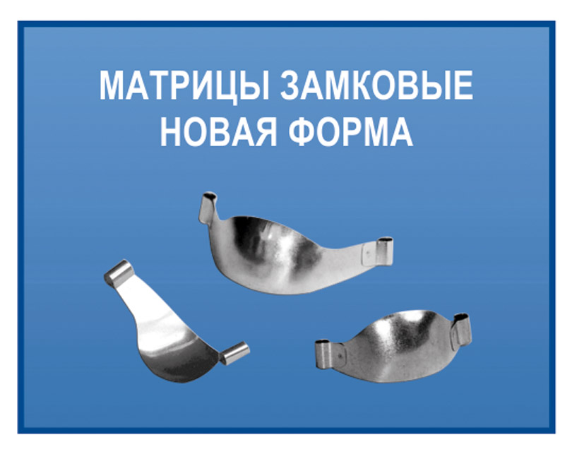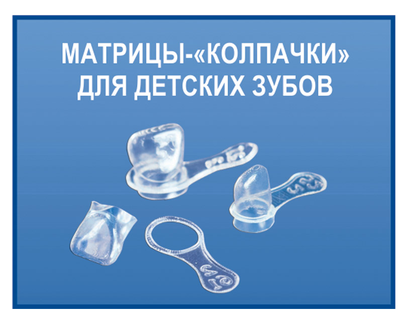 Матрицы-«колпачки» для детских зубов Матрицы выпускаются 4-форм, двух размеров - средние (размер 2) и большие (размер 3). Каждая матрица-«колпачок» имеет держатель для удобства в работе. На держателе указаны номер зуба (форма) и размер «колпачка». Новая система крепления держателей обеспечивает минимальную толщину «колпачка» в десневой области. |