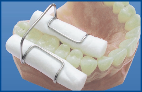 Cotton roll holder is intended for fixation of cotton rolls during dental procedures. |