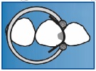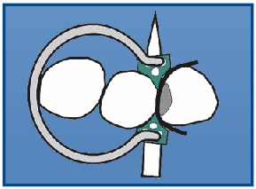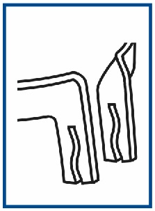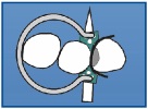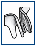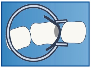 Tines of M ring are curved out to fix matrix on mesial side of the tooth.